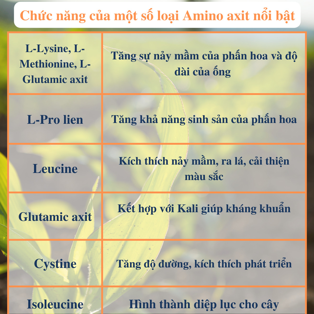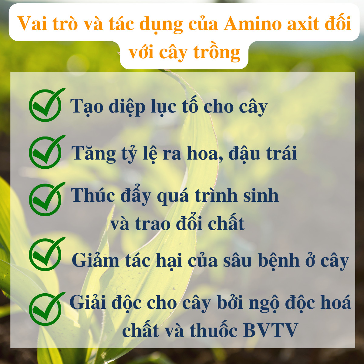 - Amino axit là thành phần cấu tạo protein và enzyme cho cây trồng.