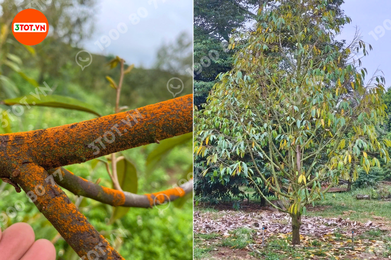 “Tình trạng rong rêu, tảo đỏ, nấm hồng & vàng lá thối rễ trên sầu riêng”