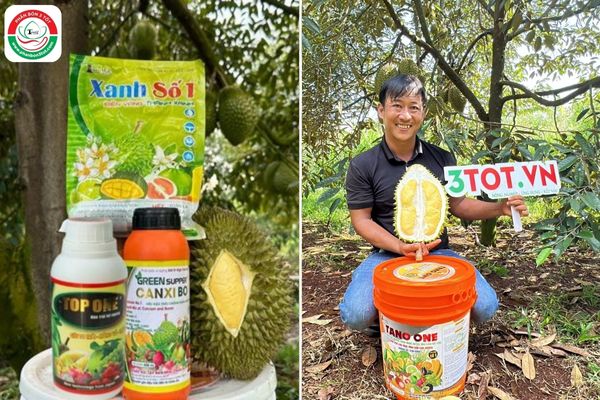 Ngoài ra, tiến hành phun bổ sung Xanh số 1 (Vi lượng) + Kali hữu cơ + Canxi Bo trên lá để bổ sung vi lượng cho cây sầu riêng, hỗ trợ quá trình phát triển và giảm nguy cơ nứt gai.
