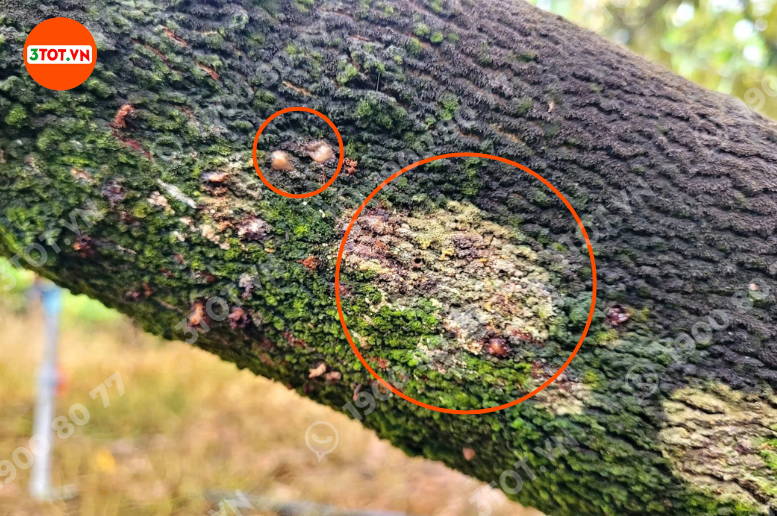 “Dấu hiệu mọt đục cành: có lỗ nhỏ trên cành/thân kèm mùn cưa li ti, chảy nhựa”