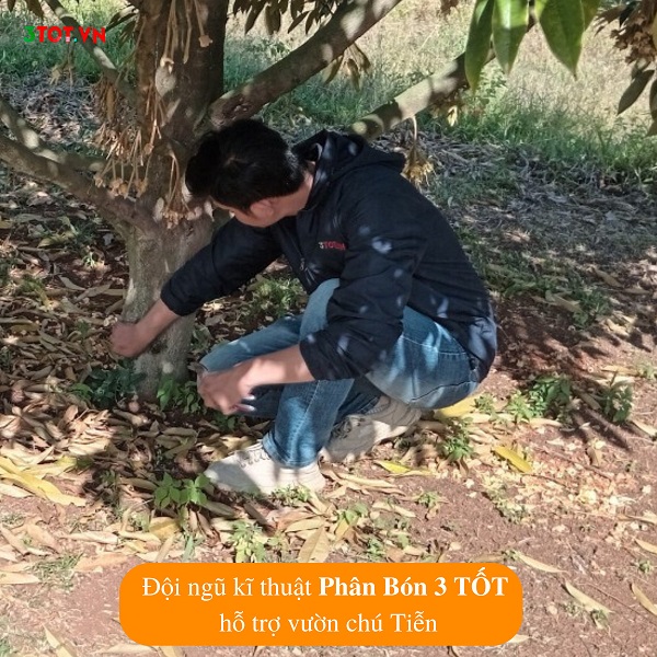 Khi cây xổ nhụy được 90% bà con nên phun một cử phòng bệnh cho cây, Phân Bón 3 TỐT lên quy trình cho vườn chú Tiễn sử dụng cụ thể là: