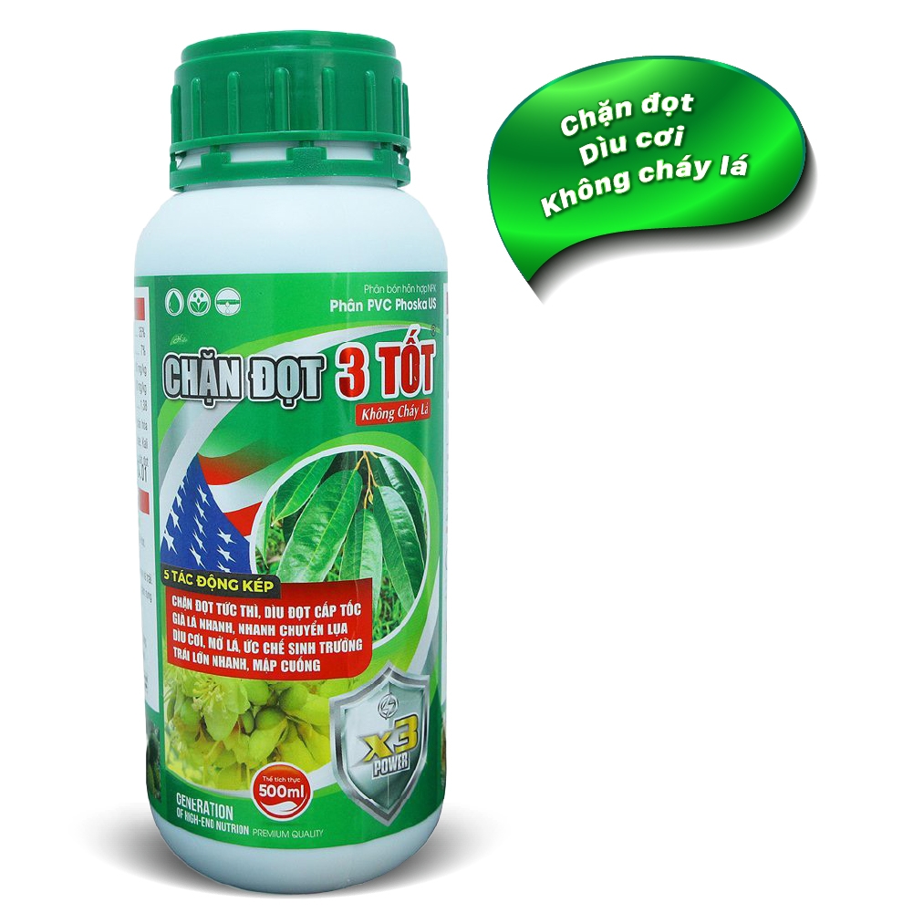 - Ngoài ra sản phẩm CHẶN ĐỌT 3 TỐT kích thích ra hoa, bật mầm ngủ, vọt hoa đồng loạt.