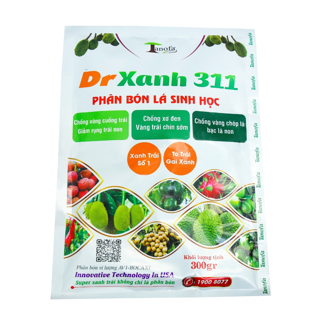 Cây nuôi trái, bón DR XANH 311 lá nhanh lá xanh vàng lá còn neo trái xanh lâu, kéo dài thời gian thu hoạch trái, tăng giá trị thương phẩm.