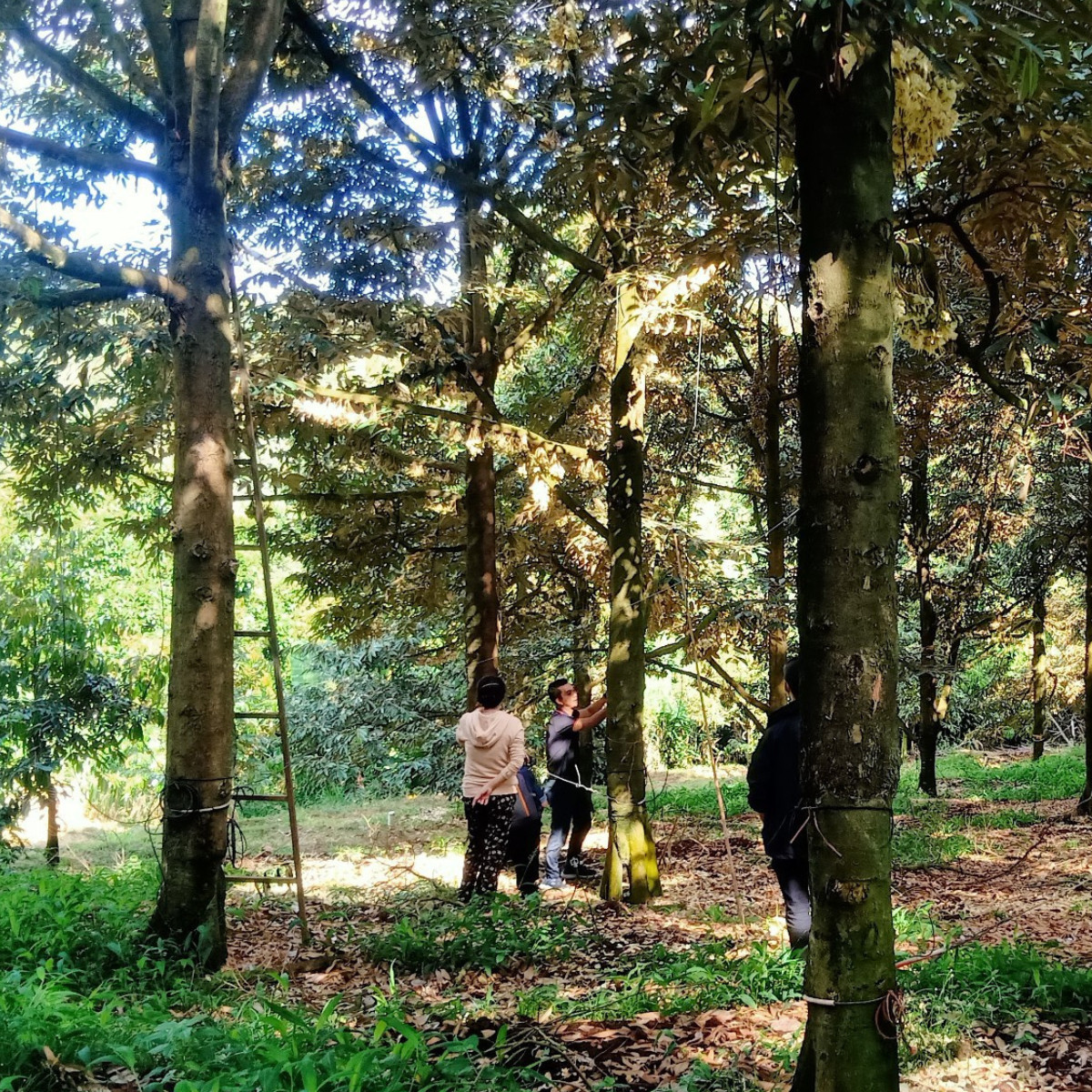 Bên cạnh đó, trong buổi thăm quan vườn và hỗ trợ kĩ thuật, Phân Bón 3 TỐT cùng với đội ngũ kĩ sư có kinh nghiệm lắng nghe chia sẻ của cô về chăm sóc sầu riêng giai đoạn cây đang xổ nhuỵ.