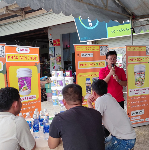 Với sự tham gia của hơn 40 nhà nông giàu kinh nghiệm trong canh tác cây trồng cùng với đại lý VTNN Nam Tâm đại diện : Anh Diệu – Vừa là chủ cửa hàng VTNN Diệu Phát vừa là một Kĩ thuật giỏi với nhiều năm kinh nghiệm trong nghề đã cùng Phân Bón 3 TỐT tham gia buổi giao lưu kĩ thuật.