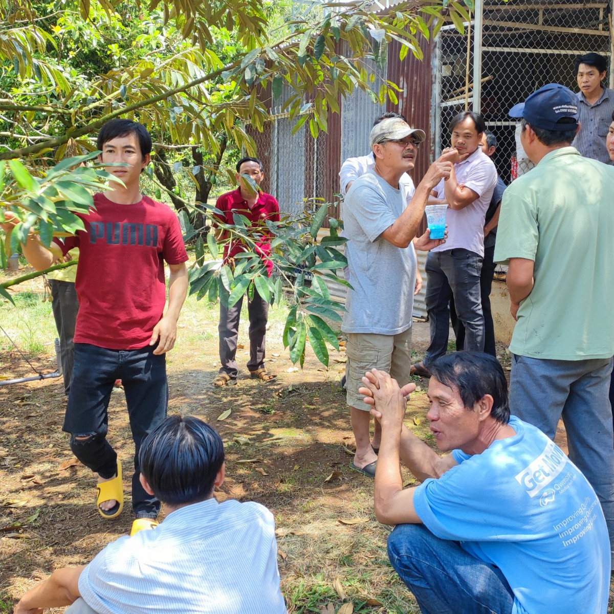 Được tổ chức tại địa điểm vườn chú Khiêm. Theo chia sẻ của chú Khiêm với chúng tôi, chú rất đam mê nông nghiệp, không ngừng học hỏi và xem nhiều kiến thức hay để áp dụng vào vườn sầu riêng của mình. Từ đó cũng giúp cho 3 TỐT lựa chọn vừơn chú Khiêm là nơi tổ chức buổi giao lưu kĩ thuật bởi ngoài sự nhiệt tình, làm việc vô cùng có tâm của chú, thì tại vườn sầu riêng của chú Khiêm rất đa dạng về giai đoạn của cây trồng.