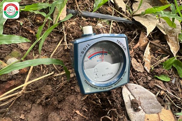 (Hình ảnh nhà vườn tiến hành đo pH để theo dõi tình trạng cây)