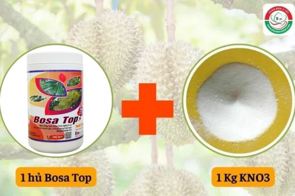 Bước 2: Tiến hành phun tạo mầm lại: Tiến hành pha 1 hủ BosaTop + 1kg KNO3 cho 200 lít nước và phun đều vào cành