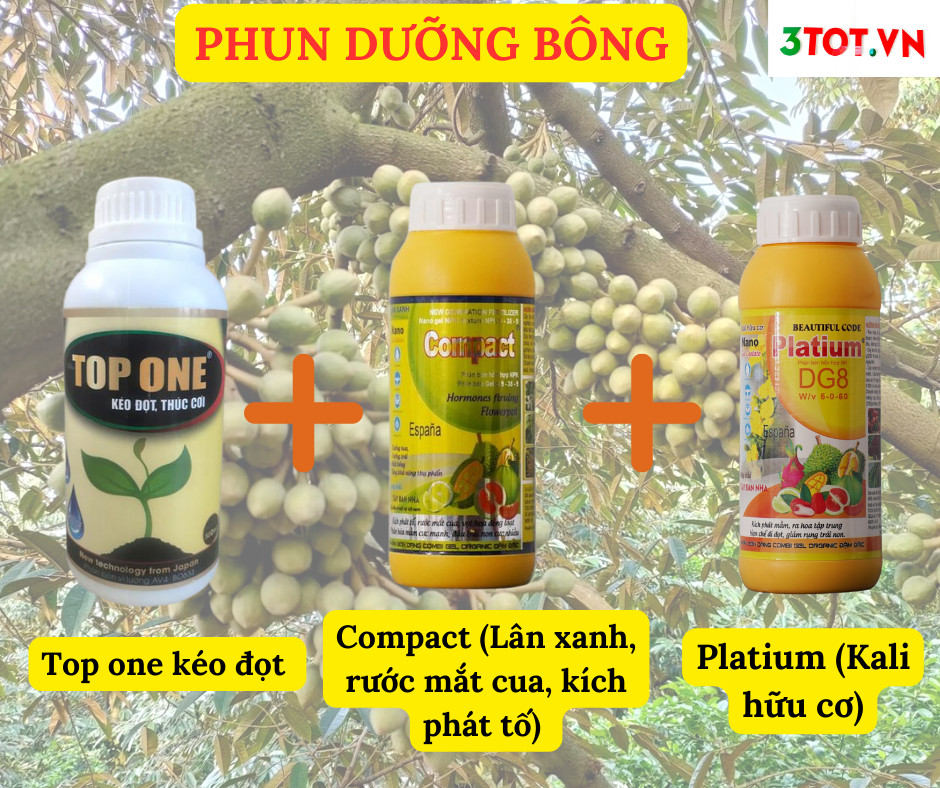 + Cử 2: 2 gói Dr Xanh(neo trái xanh lâu, chống sốc nhiệt, rụng sinh lý) + 1 chai Compact (Lân xanh) + 1 chai CanxiBo + thuốc rầy pha với 400 lít nước