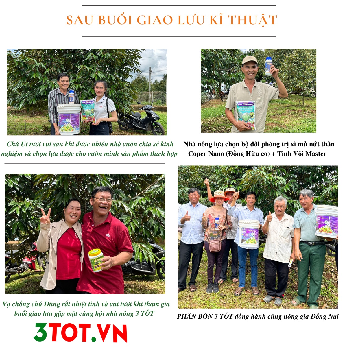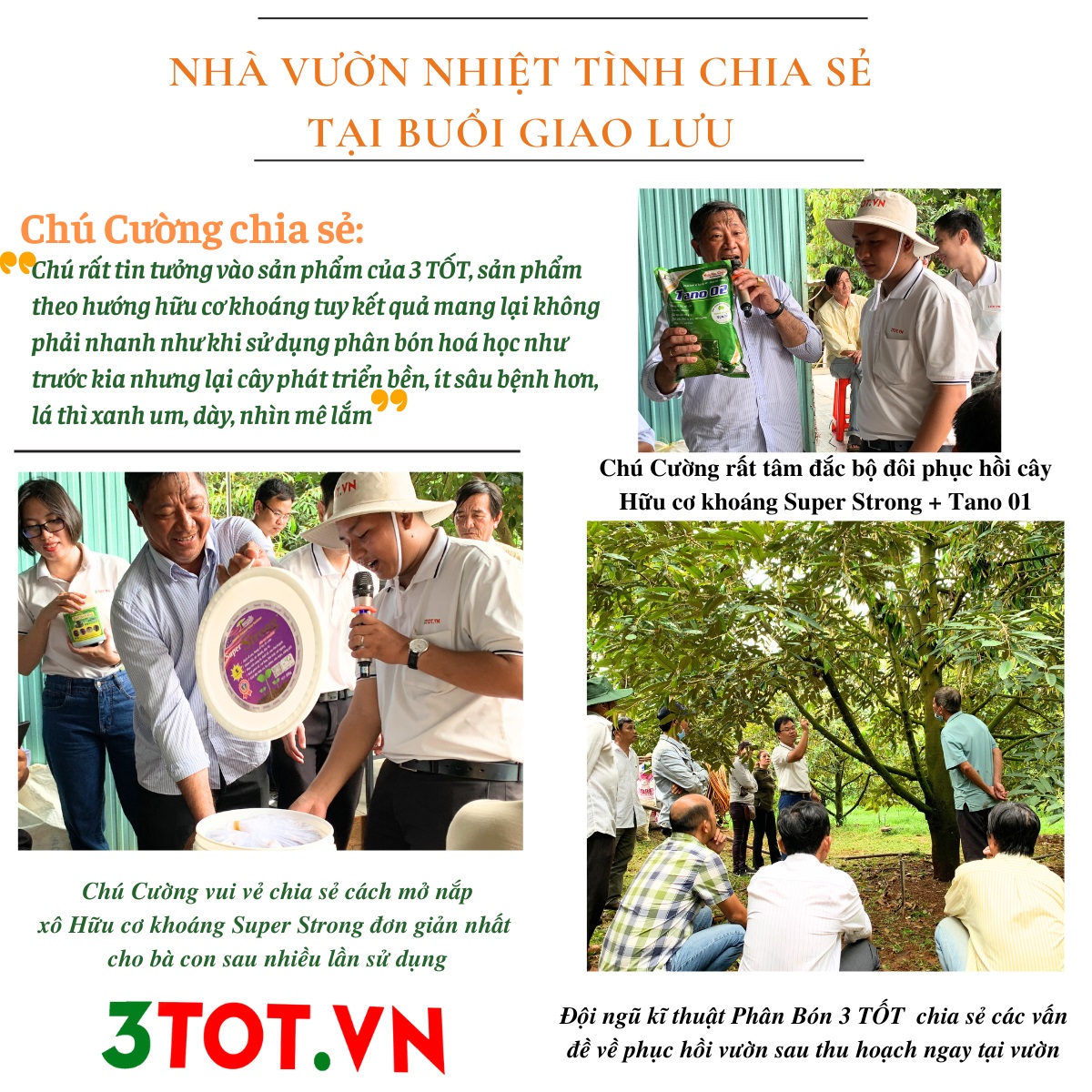 - Với nội dung Phục hồi vườn cây sau thu hoạch cần làm gì của buổi giao lưu, Phân Bón 3 TỐT rất phấn khởi khi nhận được các chia sẻ thực tế từ nhà vườn, điển hình phải kể đến:
