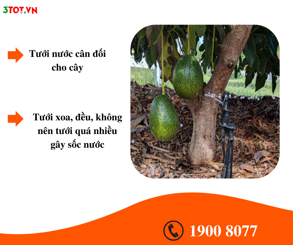 Tại những vùng chuyên canh cây bơ ở Tây Nguyên, những nhà vườn kinh nghiệm rất chú ý đến việc quản lí ẩm độ cho vườn cây bằng cách tưới lượng nước phù hợp song song với bón phân cân đối ở giai đoạn sau khi cây đậu trái. Với bà con, đây là bí quyết quyết định năng suất về sau.