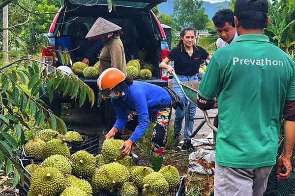 (Hình ảnh sau khi thu hoạch sầu riêng được các đại lý thu mua)