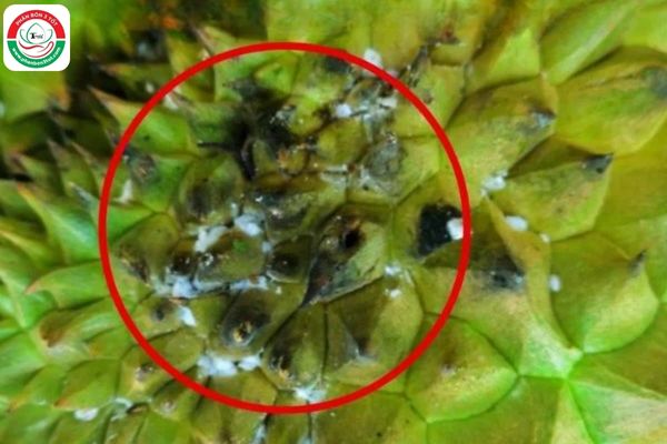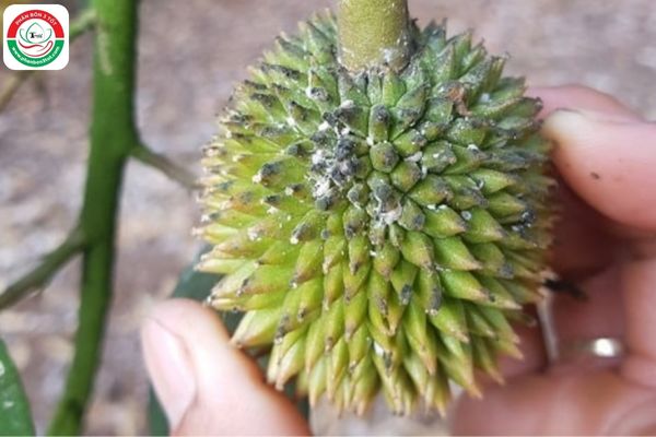 (Hình ảnh rệp sáp bám lên quả sầu riêng gây bệnh nấm bồ hóng)