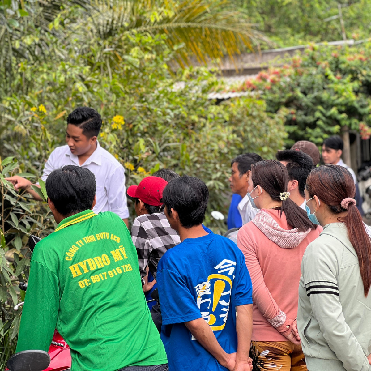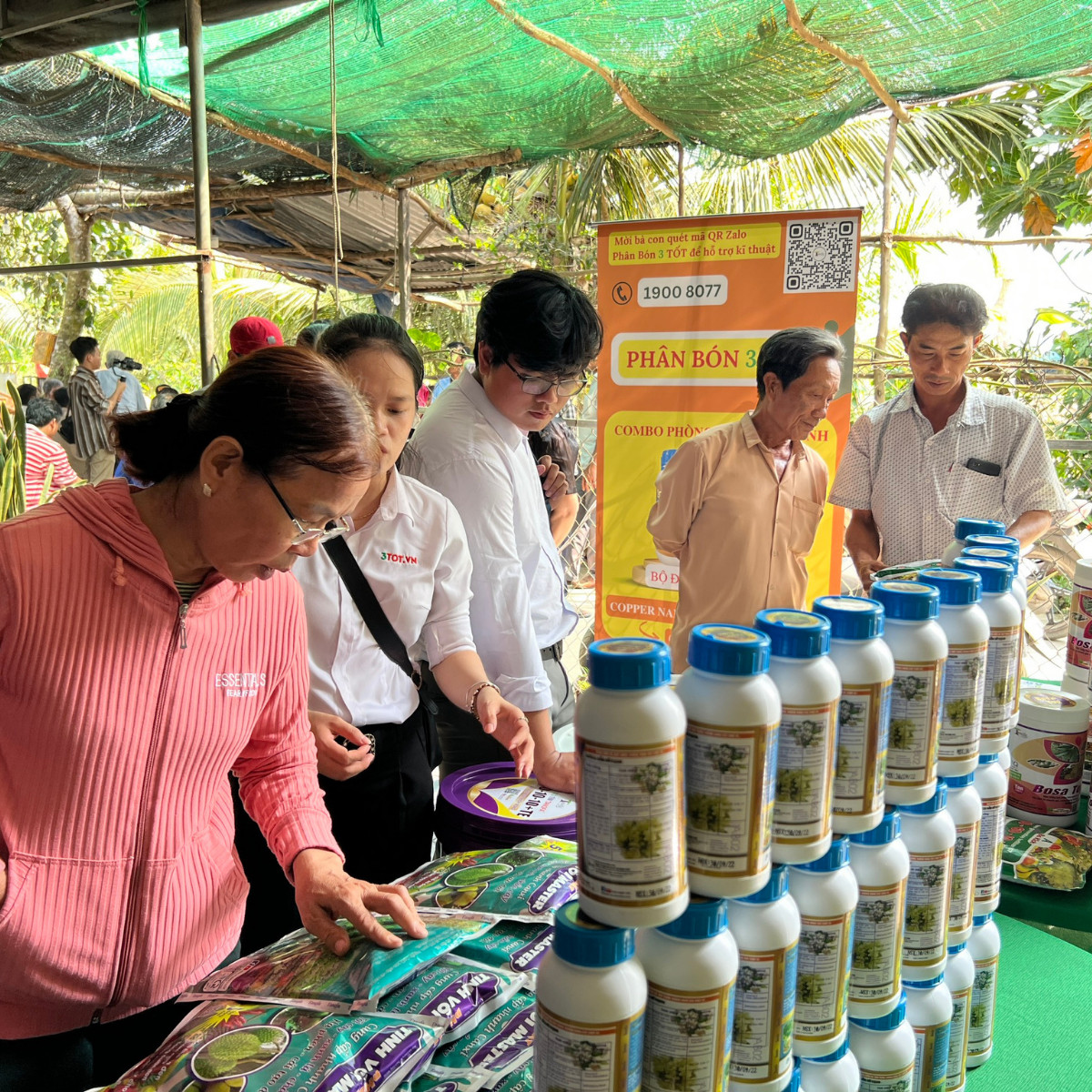 Tại buổi giao lưu kĩ thuật, nhiều nhà vườn đã cùng nhau đi thăm quan vườn chú Ba On, cùng lắng nghe chia sẻ cách chăm sóc làm trái bói sầu riêng, và cách sử dụng các sản phẩm để giúp cây phục hồi sau thu hoạch hiệu quả.