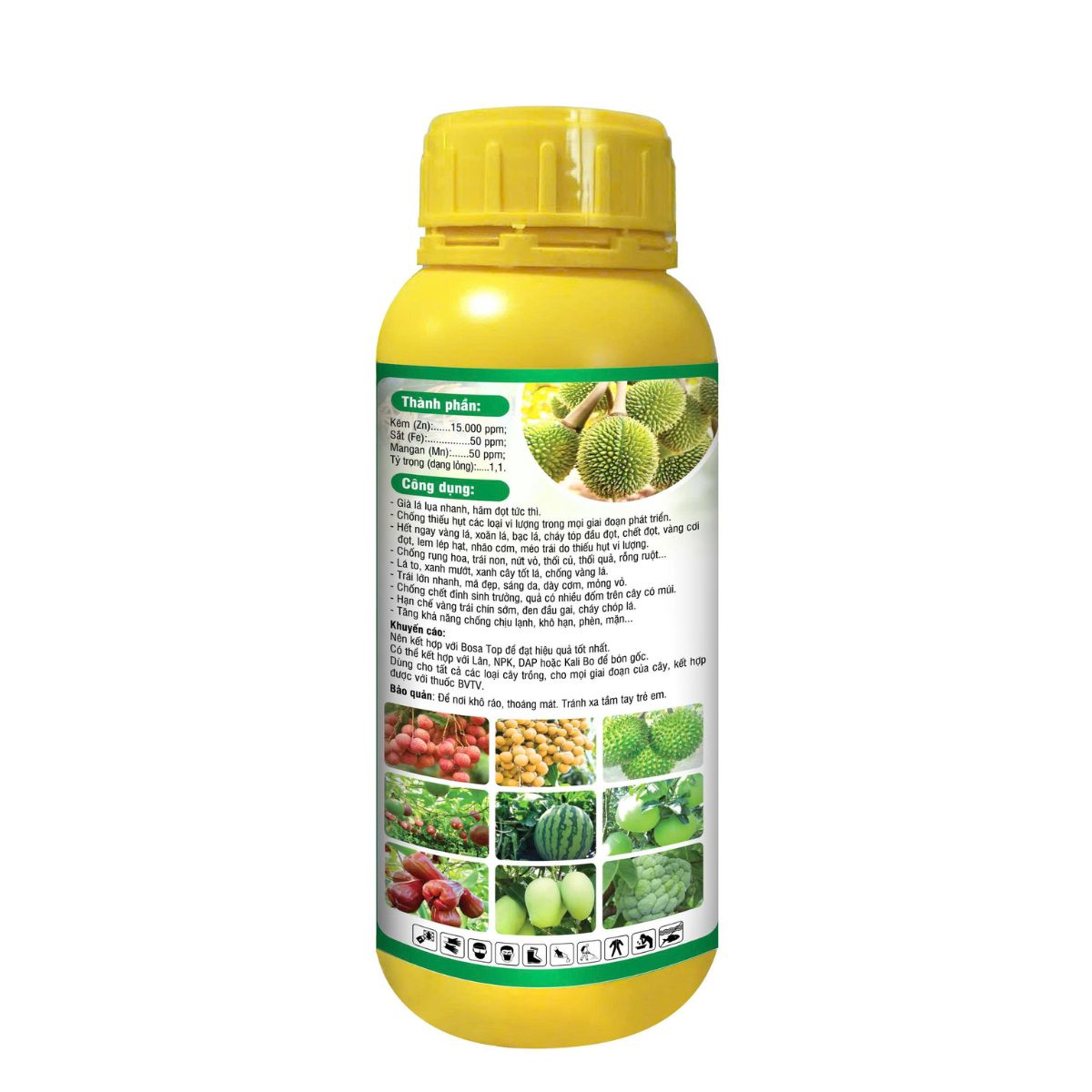 Lưu ý: Không được sử dụng trực tiếp vào bông xổ nhụy cho đến giai đoạn nuôi trái. Lắc đều trước khi sử dụng.
