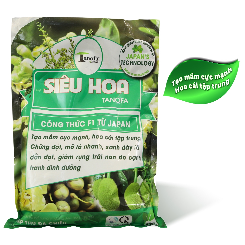 N: 0%; P: 25%; K: 30%+TE (Zn: 5.000ppm; B: 100ppm; Fe: 70ppm). Cùng phụ gia chuyên biệt dùng phân hóa mầm hoa vừa đủ 100%.