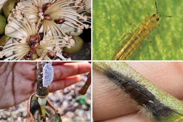 Trong giai đoạn cây sầu riêng chuẩn bị xổ nhụy, bông trái đang phát triển và cực kì nhạy cảm. Để tăng tỉ lệ đậu trái, năng suất và chất lượng trái, bà con cần chú ý đến việc kiểm soát sâu hại. Các loại sâu như bọ trĩ, sâu ăn bông, bọ cánh cứng, và rệp sáp thường xuất hiện và gây hại cho cây sầu riêng.