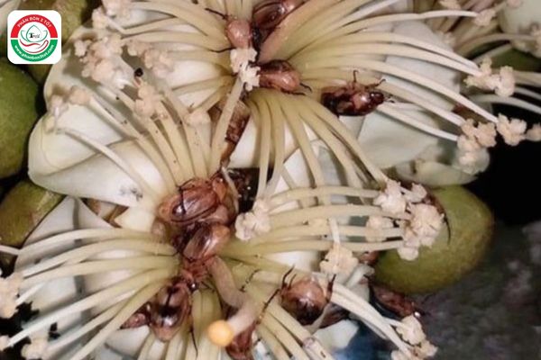 (Hình ảnh bọ cánh cứng đang phá hoại trên bông sầu riêng)