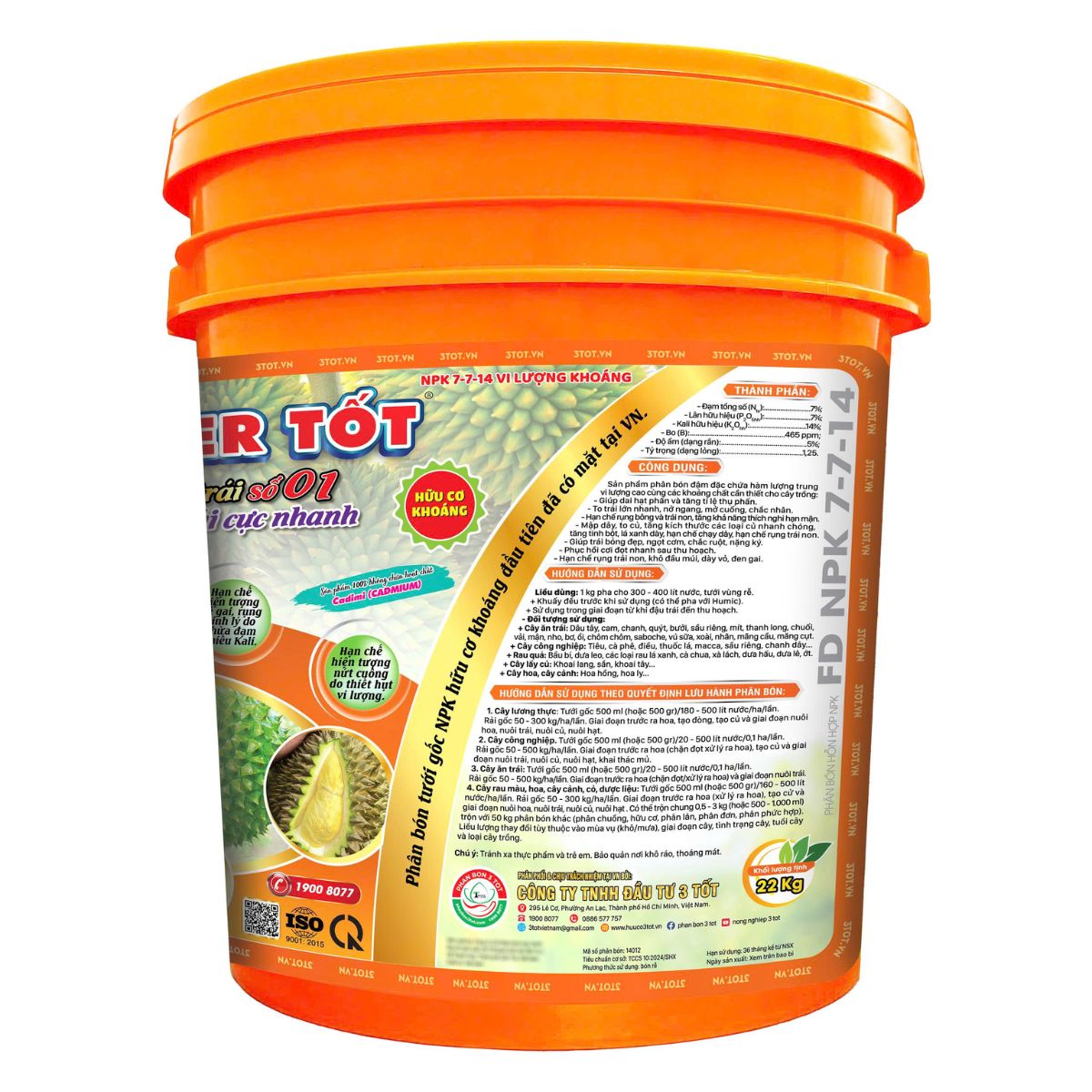 Đạm tổng số Nts: 7%; Lân hữu hiệu P2O5 hh: 7%; Kali hữu hiệu K2O hh: 14%; Bo (B): 465ppm; Độ ẩm dạng rắn: 5%; Tỷ trọng: 1.25.