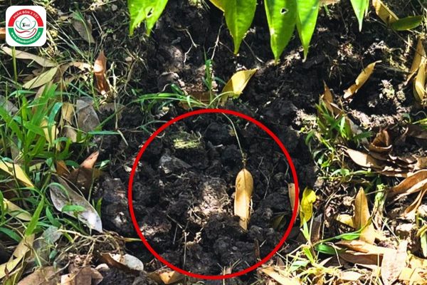 Bước 1: Hút bớt nước trong mương, cắt bớt cỏ, sau đó dùng cuốc hoặc chỉa 3 răng xới đất, phạm vi từ 1/2 – 2/3 tán cây trở ra ngoài (tính từ gốc ra), tán đến đâu thì xới đến đó, nhằm cải tạo đất, làm cho đất được tơi xốp và thông thoáng, loại bỏ khí độc, bỏ rễ cũ bị hư hại tái tạo lại rễ mới