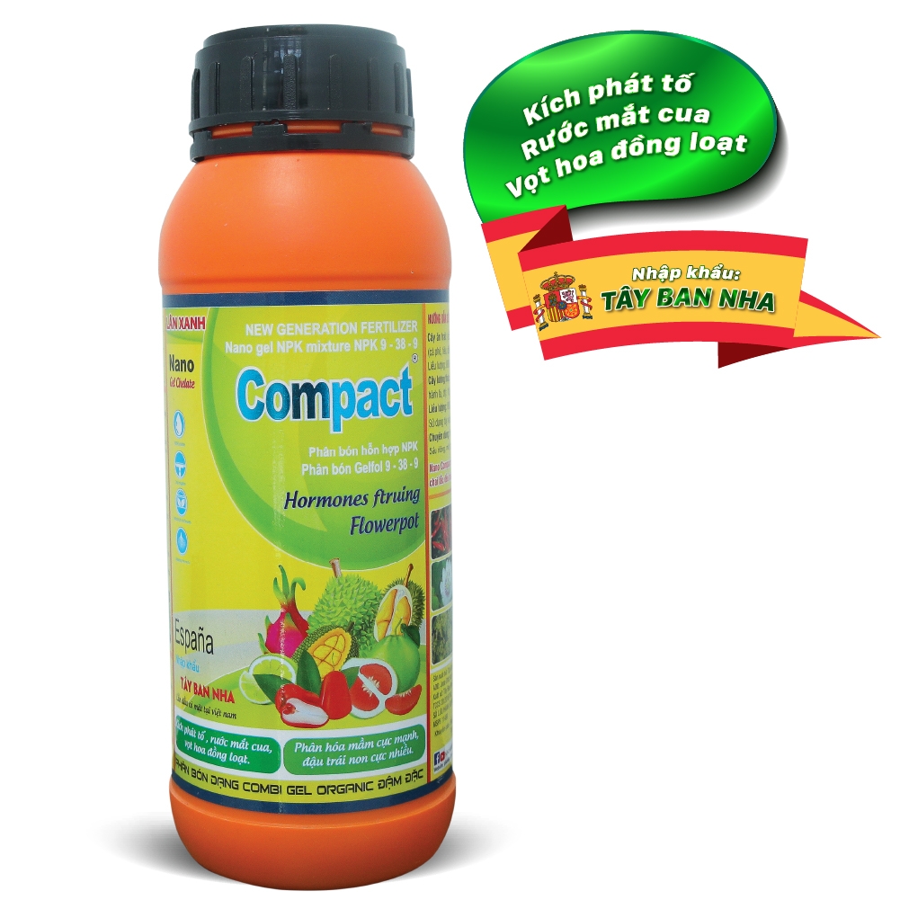 Ngoài ra sản phẩm COMPACT LÂN XANH không lem trái khi dùng cho Thanh Long giai đoạn trước thu hoạch. Phối với Canxi Bo Sữa giảm hiện tượng Mít sơ đen, tăng phẩm trái, công thức 9-38-9 phù hợp cho sầu riêng giai đoạn rụng sinh lý do thừa đạm.