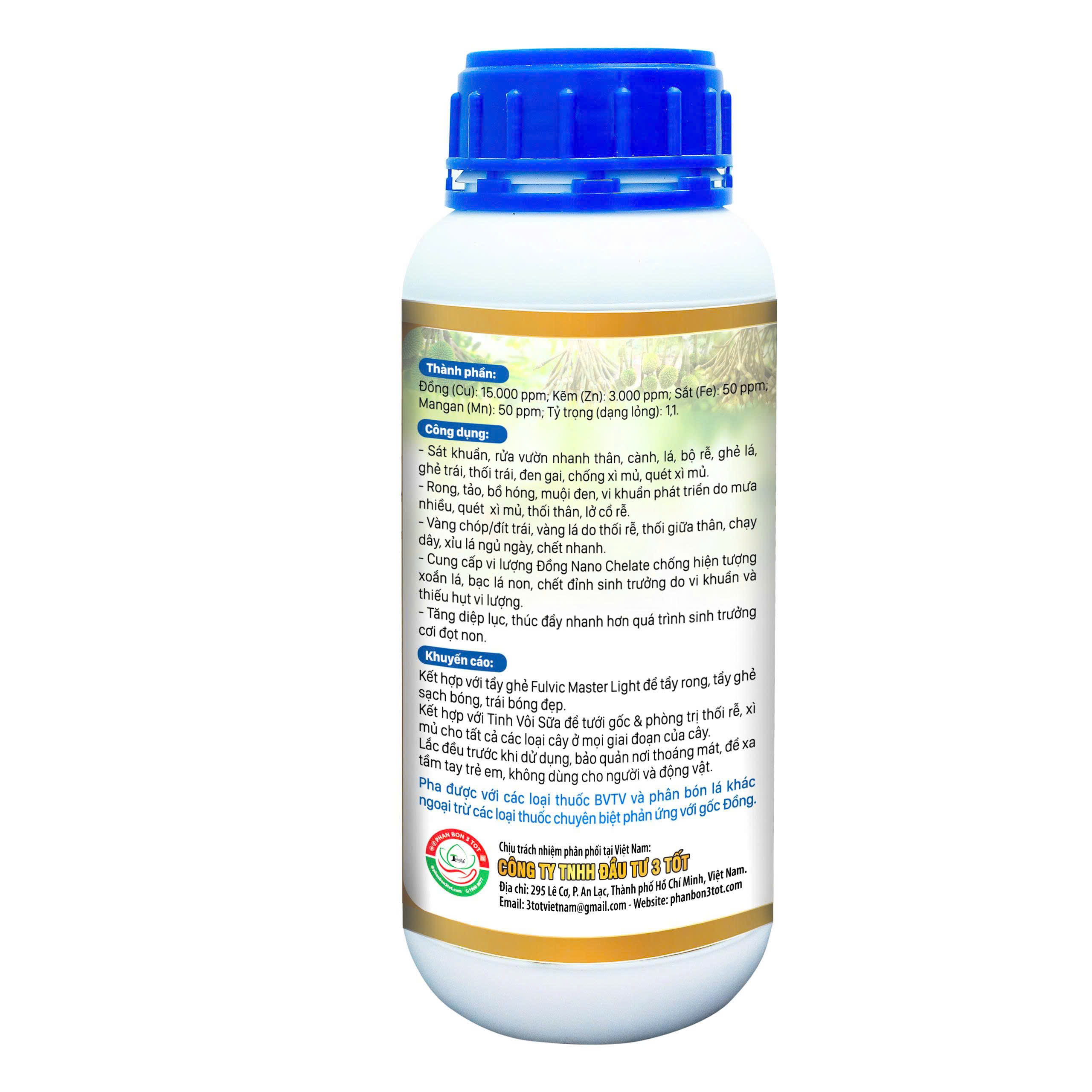 - Cung cấp vi lượng Đồng nano chelate chống hiện tượng xoắn lá, bạc lá non, chết đỉnh sinh trưởng do vi khuẩn và thiếu hụt vi lượng.