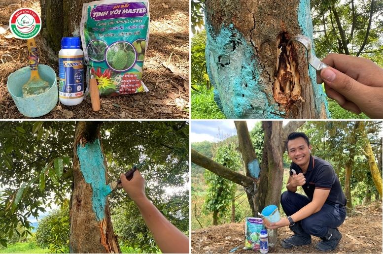 Đối với những cây phát hiện xì mủ, bà con tiến hành: