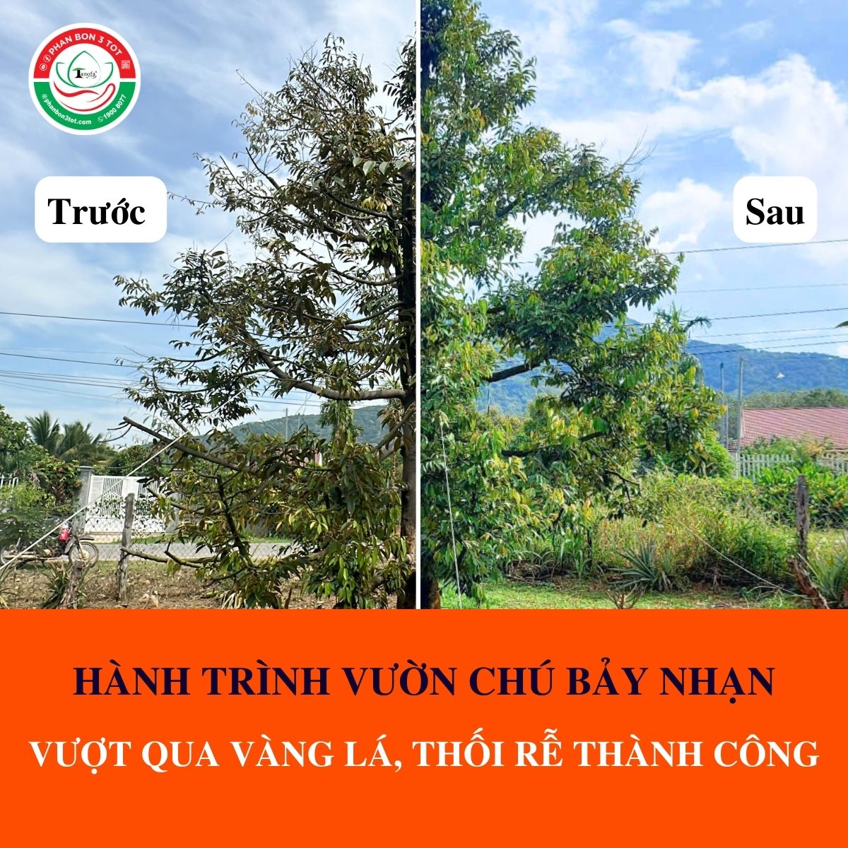 Hãy cùng khám phá hành trình phục hồi kỳ diệu của vườn chú Bảy Nhạn với “Quy trình 4 bước Phục Hồi Vườn Vàng Lá Thối Rễ Sầu Riêng” từ Phân Bón 3 TỐT!