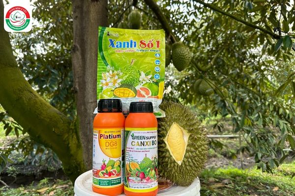 Bổ sung các trung vi lượng như Canxi, Boron, Magie,... bằng cách phun xịt lá và trái bằng gói Xanh số 1 + chai Canxi - Bo.
