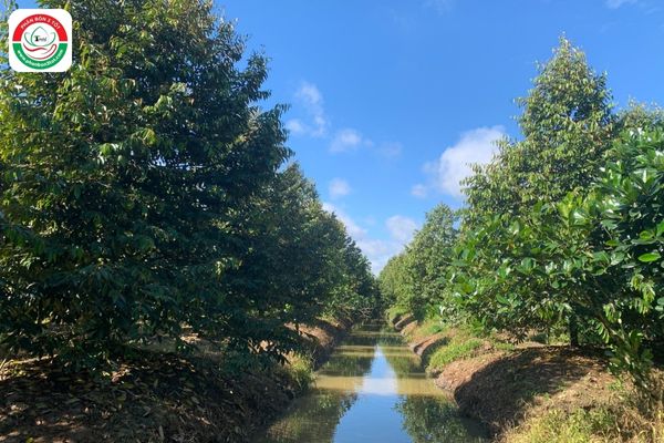 Nếu thời tiết mưa nhiều, nhà vườn cần chủ trương tìm biện pháp thoát nước nhanh nhất cho sầu riêng, không để nước đọng như chẻ rãnh thoát nước.