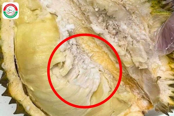 (Hình ảnh sầu riêng bị sượng cơm gây ảnh hưởng chất lượng)