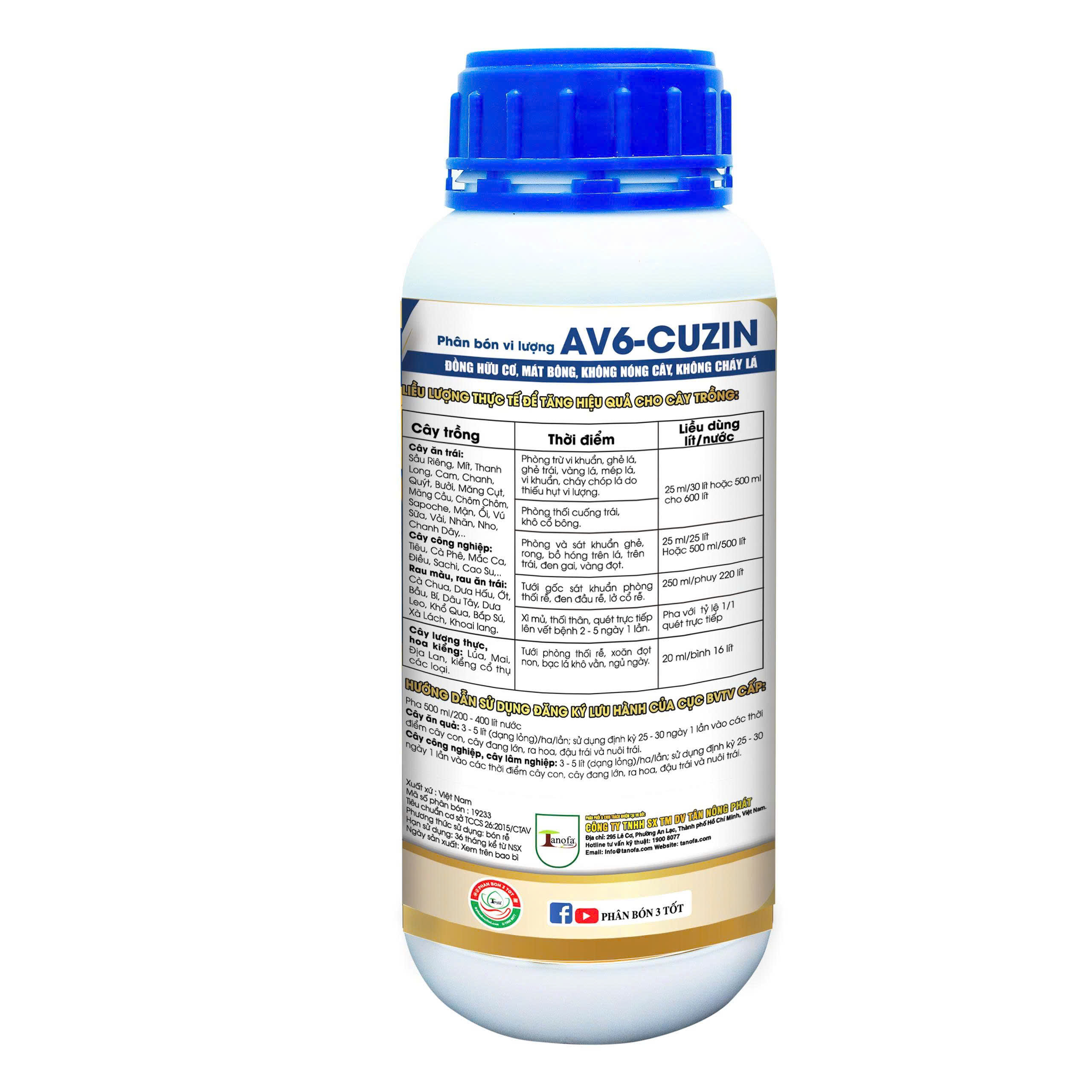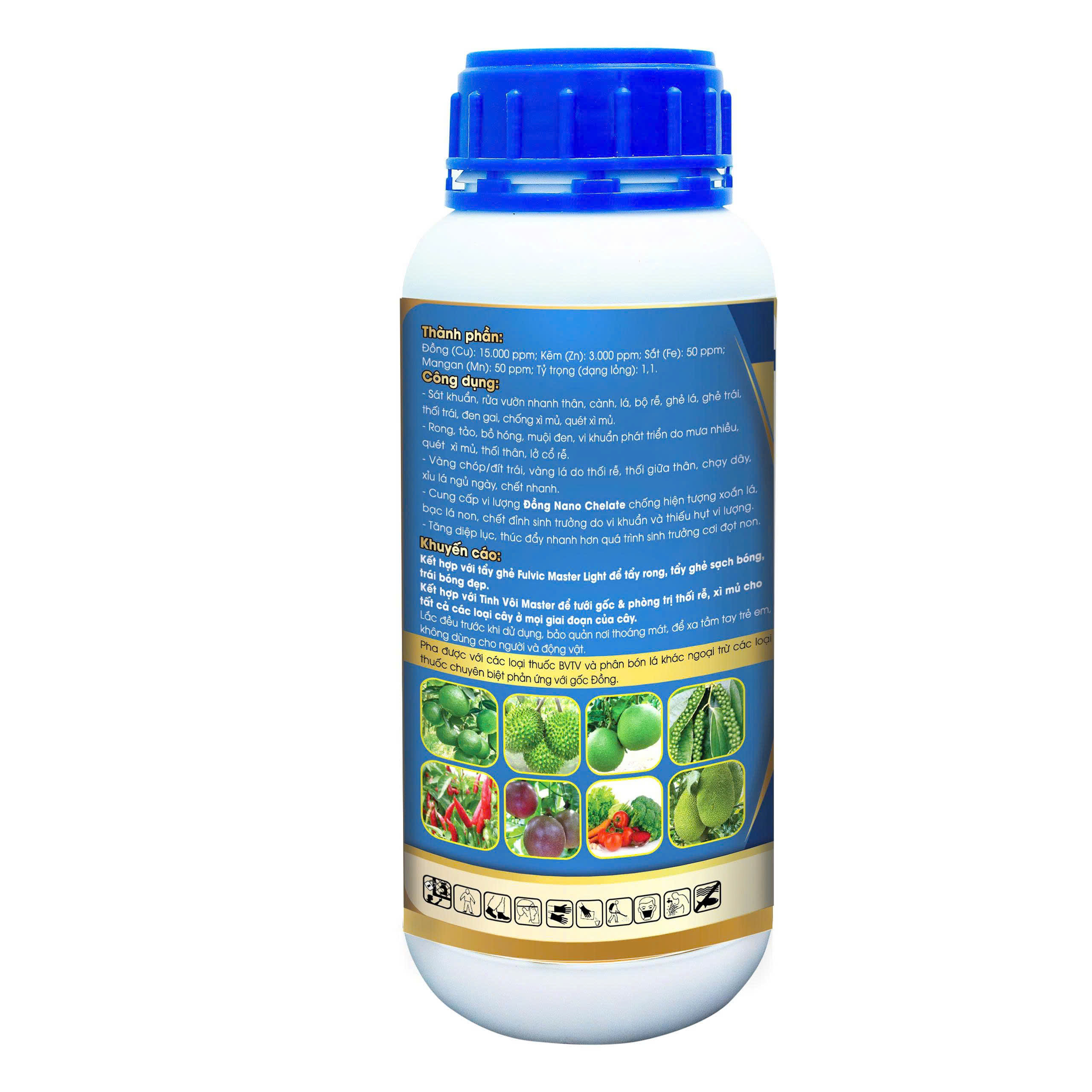 + Phòng trừ nấm bệnh vi khuẩn, ghẻ lá, ghẻ rái, vàng lá mép vi khuẩn, Phòng nấm cuống trái, khô cổ bông (pha 25ml/30 lít nước hoặc 500ml cho 600 lít).