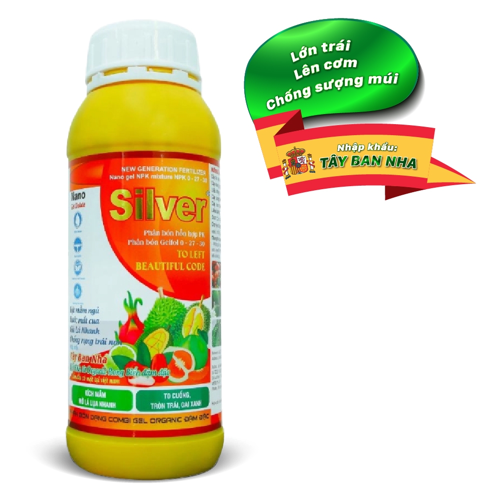 SILVER LỚN TRÁI VÀO CƠM CHỐNG SƯỢNG MÚI - Kích thích trái lớn nhanh, nở bụng, lên cơm, vỏ mỏng | Giảm rụng sinh lý do thừa đạm, cân bằng dinh dưỡng. Hạn chế sơ đen, nứt trái, khô đầu múi, giúp trái chín đều, tròn đẹp.