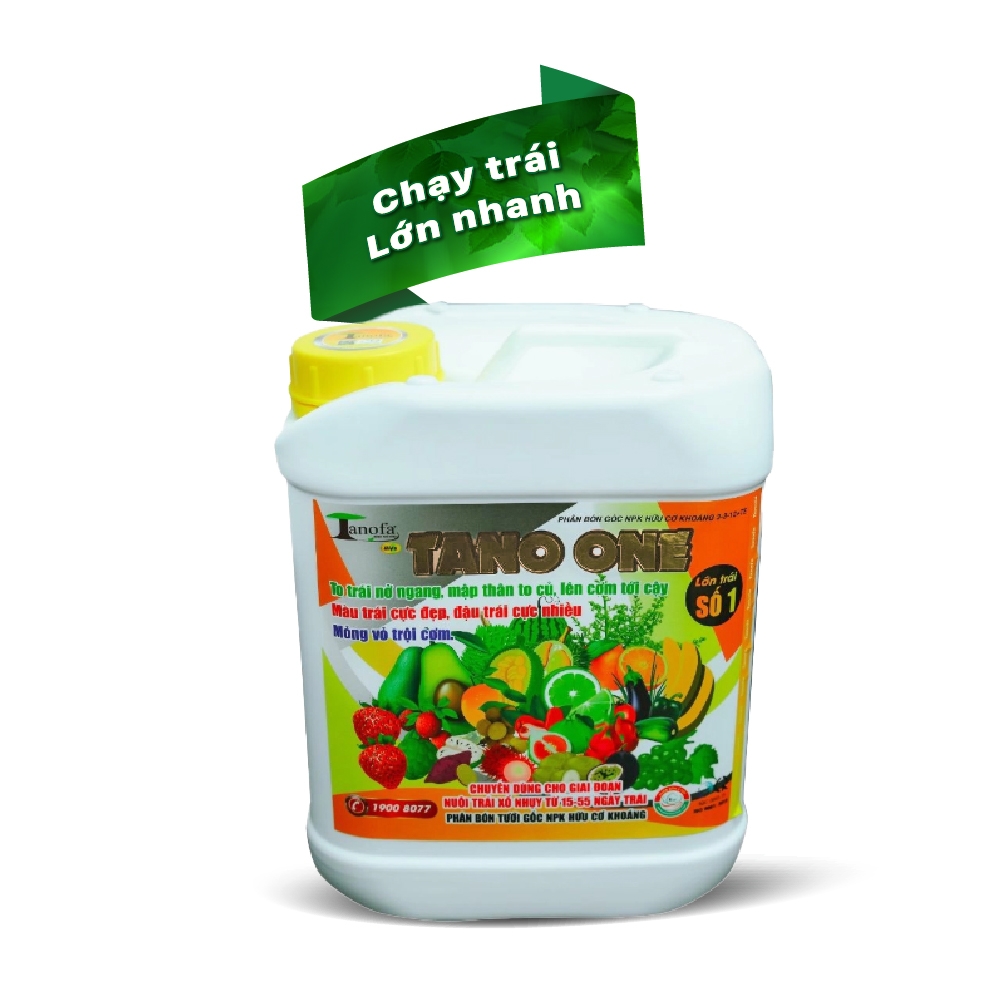 - Ngoài ra TANO ONE lớn trái và tăng tỷ lệ thụ phấn giúp cây đậu trái cực nhiều, chống rụng trái non, khô đầu múi, dày vỏ, đen gai