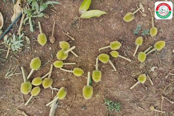 (Hình ảnh sầu riêng đến giai đoạn rụng sinh lý, trái bắt đầu tháo khớp và rụng bớt)