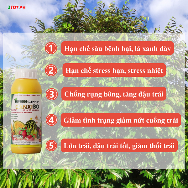 - Canxi chống rụng bông, tăng cường đậu trái.